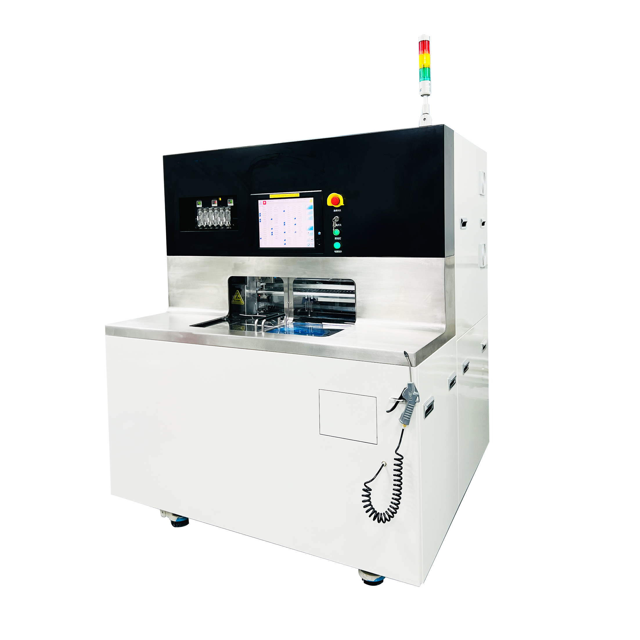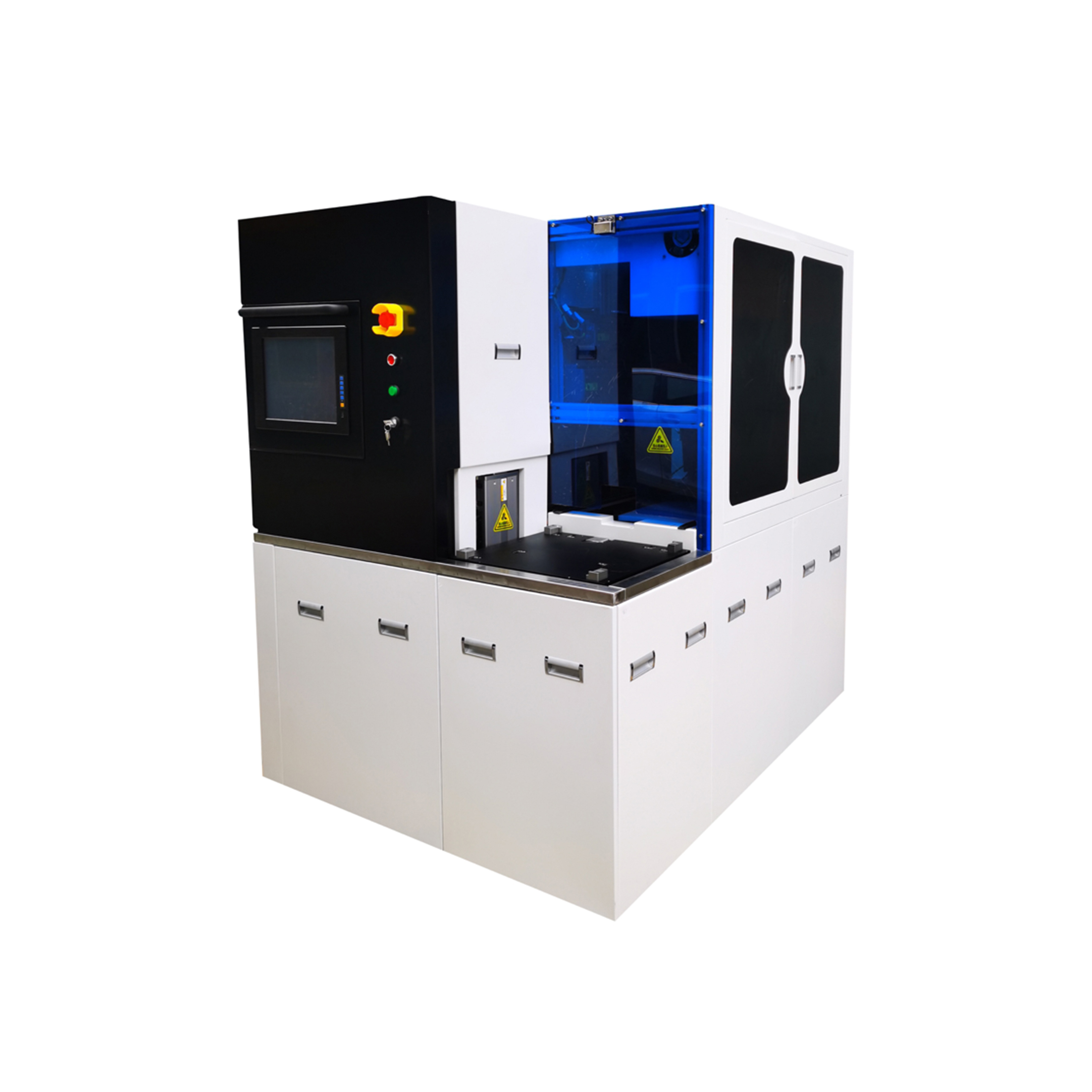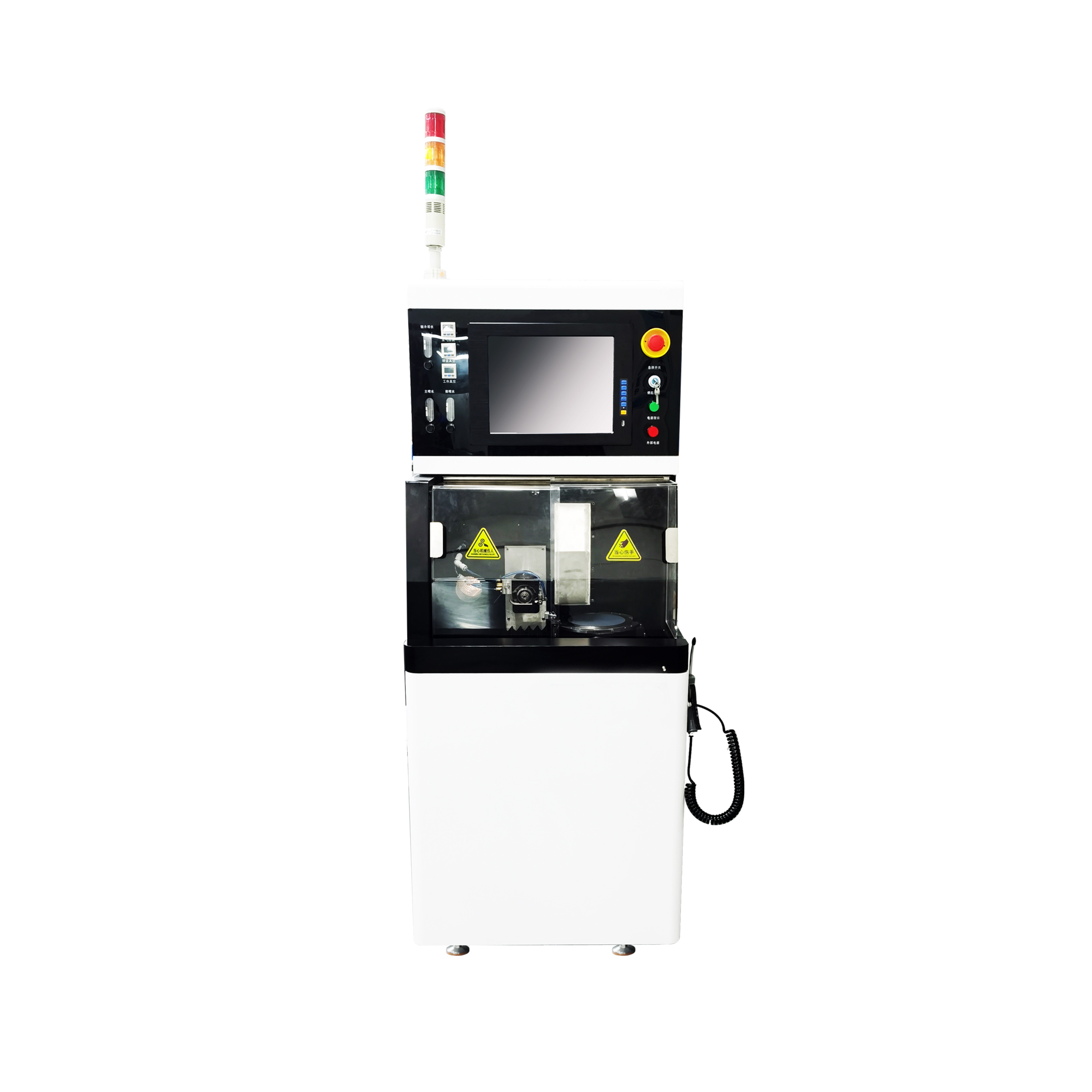 BT3666A 精密砂輪劃片機主要用于半導體晶圓、集成電路、QFN、發光二極管、miniLED、太陽能電池、電子基片等的劃切,適用于包括硅、石英、 氧化鋁、氧化鐵、砷化鎵、鈮酸鋰、藍寶石和玻璃等材料。其工作原理是通過空氣靜壓主軸帶動金剛石砂輪劃切刀具高速旋轉,將晶圓或器件沿切割道方向進行切割或開槽。 機型實現了晶圓從裝片、對準、切割、清洗到卸片的半自動操作。該機型配置了大功率對向式雙主軸,Z1和Z2軸上都配置了NCS和專用顯微鏡,大幅度減少對準和檢查時間,從而降低人工成本、提高生產效率。